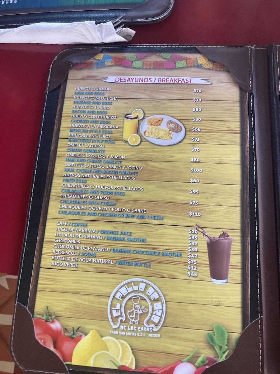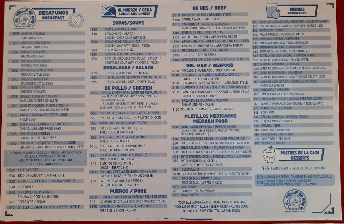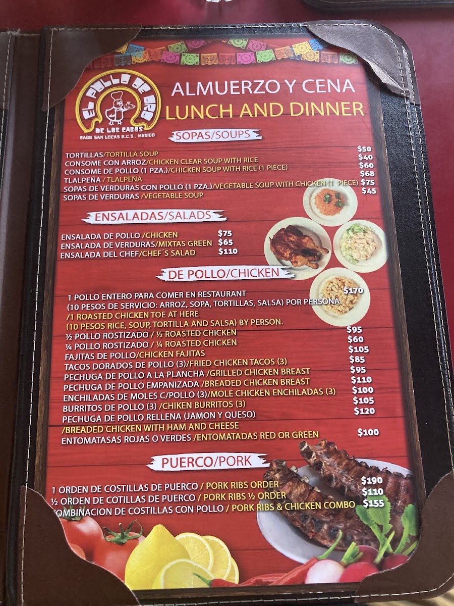 El Pollo de Oro Menu